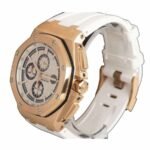 The dial is white in color and features stick indeces and Royal Oak hour-markers made of 904L stainless steel. The hands are also made of 904L stainless steel and are stick-shaped. The movement is an automatic AP 3126 / 3840 caliber with a power reserve of 60 hours and a precision of (-3/+3 sec/day) within COSC certification limits. It also has a sweep motion second hand. The watch is water-resistant up to 30m and comes with a 2 year international warranty. It is a perfect 1:1 super clone Swiss mechanism watch and even your jeweler won’t be able to tell the difference!