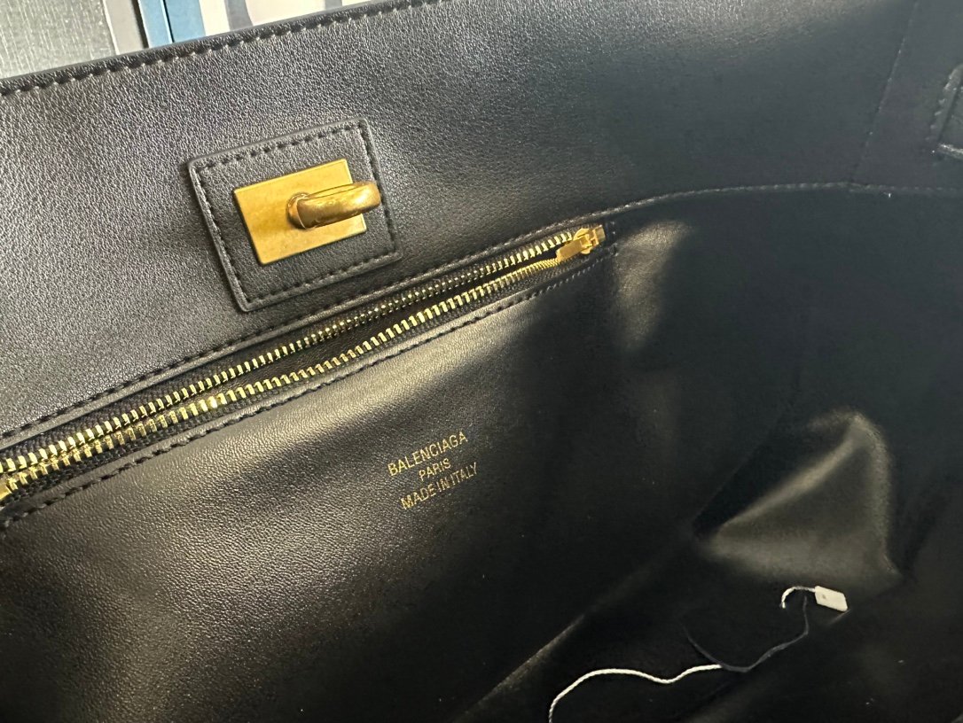New Balenciag Winter 24 series Re-see handbag, single-shoulder bucket bag, made of top-layer cowhide with visible texture. It uses original hardware and is minimalist, high-end and atmospheric. A handbag transformed from a motorcycle glove. Hanging on it is the fashion recreated with a key ring buckle. It gives off a lazy and御姐风 (domineering female style) look when worn. Size: 37x21x10.