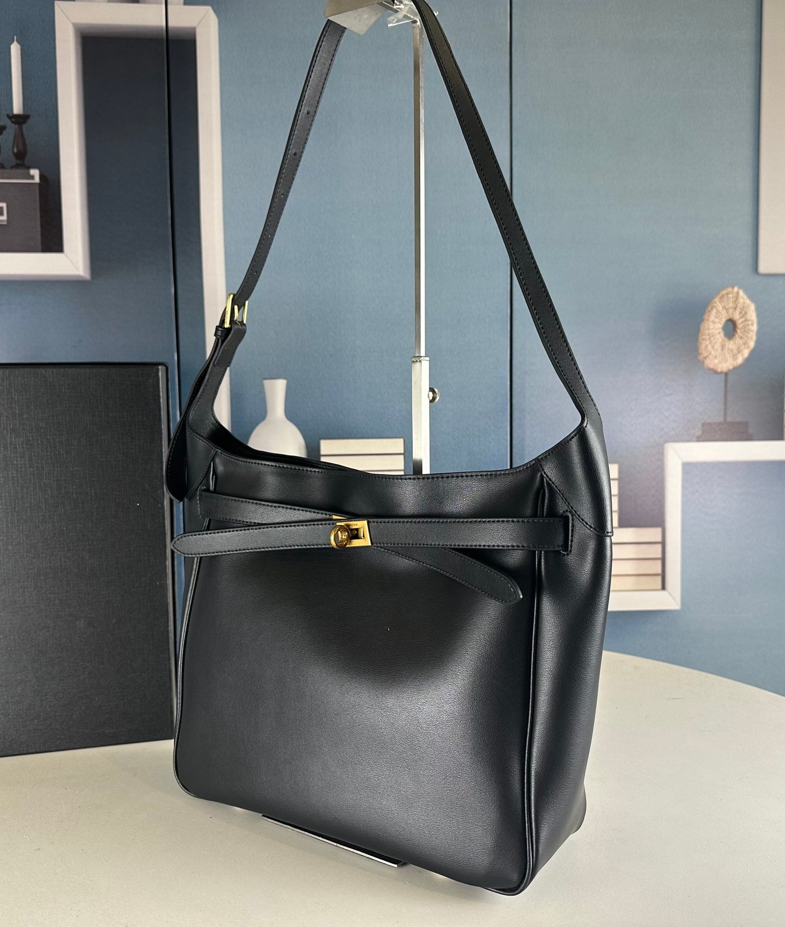 New Balenciag Winter 24 series Re-see handbag, single-shoulder bucket bag, made of top-layer cowhide. The texture is visible to the naked eye. Adopts original hardware. Minimalist, high-end, and大气. A handbag transformed from a motorcycle glove. Hanging with fashion recreated from a key ring buckle. The upper body has a lazy and御姐风 style. Size: 30x25x10.
