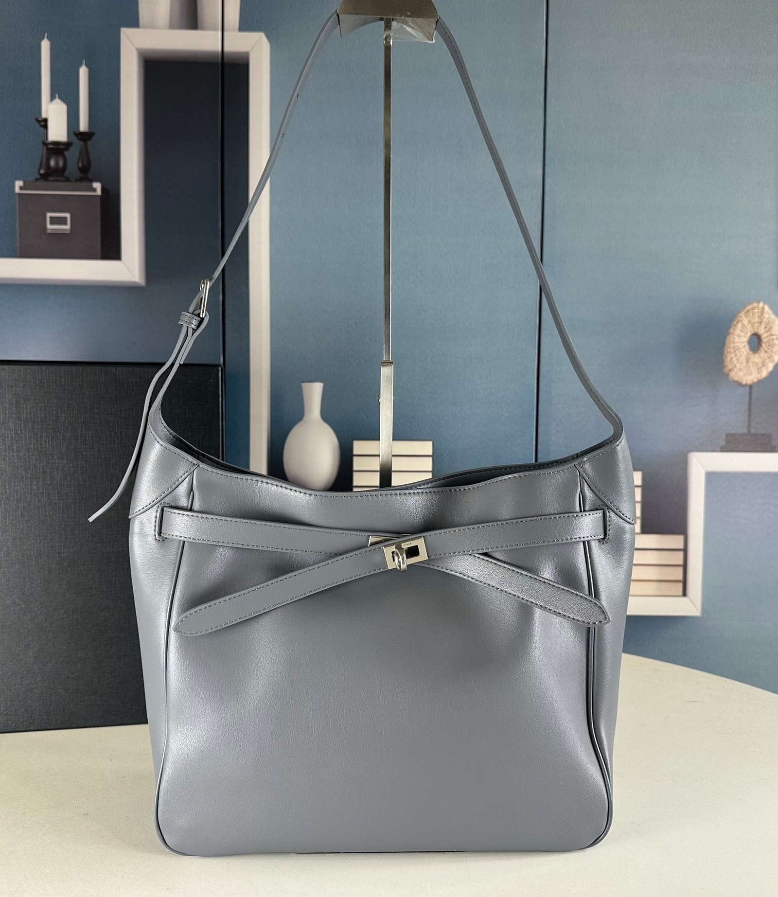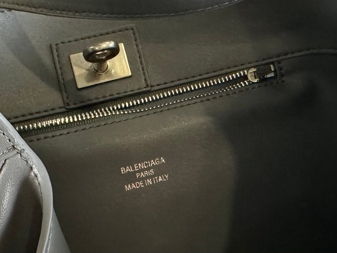 New Balenciag Winter 24 series Re-see handbag, single-shoulder bucket bag, made of top-layer cowhide with visible texture. Adopting original hardware, it is minimalist, high-end and atmospheric. A handbag transformed from a motorcycle glove, hanging with fashion recreated from a key ring buckle. It gives off a lazy and御姐风 look when worn. Size: 30x25x10.