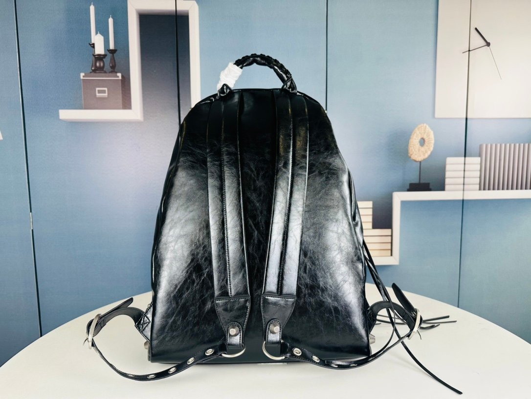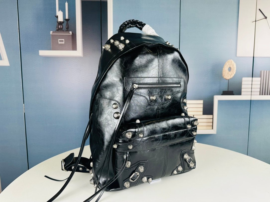 New style. Top-grain leather ❤️ A fashionable bag that can elevate the whole body’s outfit ||| Balenciaga Le Cagole studded backpack. A super cool and interesting backpack. Casual and lazy, a bit cool and chic. Hahaha. It is a backpack that can elevate the whole body’s outfit. Leather determines the soul of the whole bag. #Motorcycle bag Balenciaga bag. Size: 34x49x9.