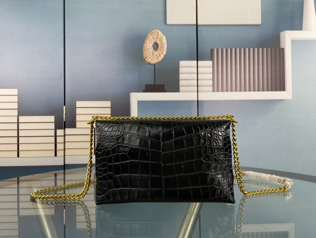 The newly launched small square crocodile pattern bag. The design of the chain length allows it to be worn on one shoulder or crossbody. The simple crocodile pattern combined with the logo mark instantly fills it with a high level of sophistication.