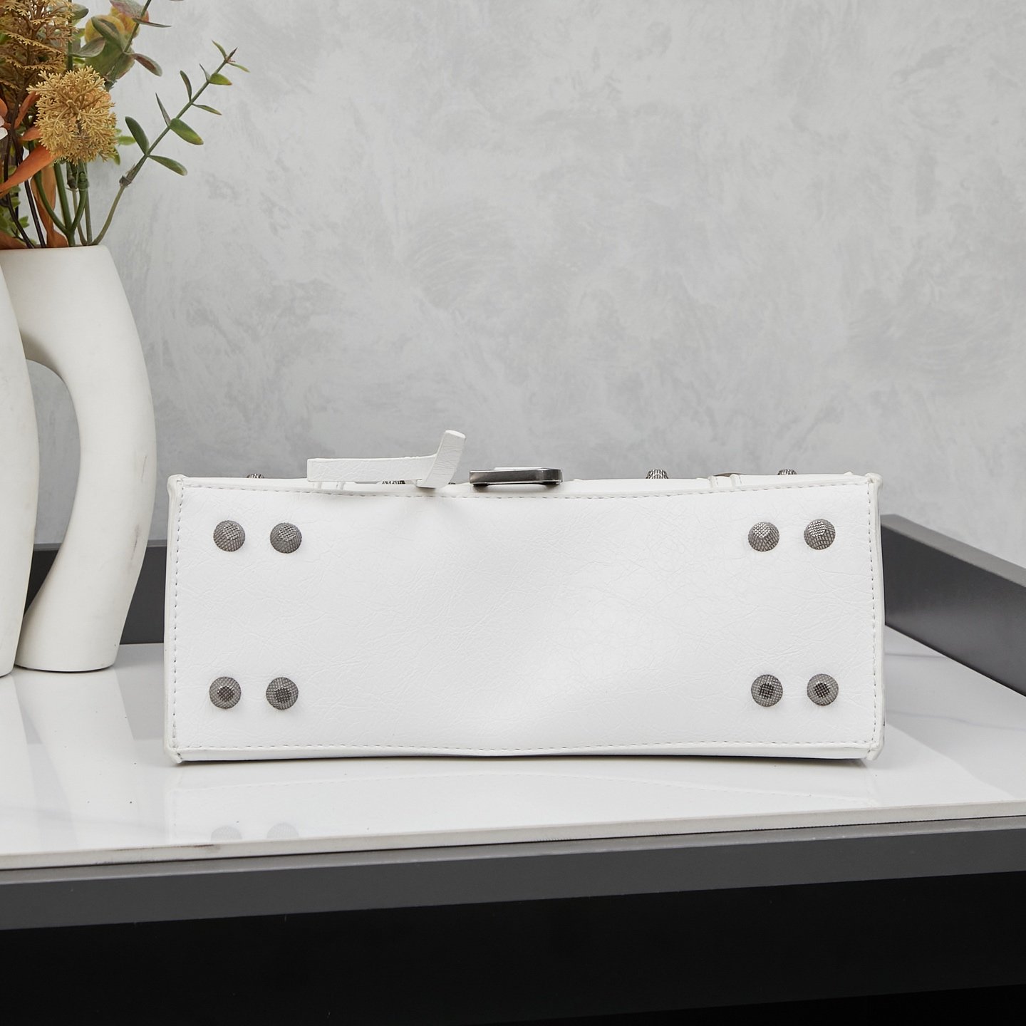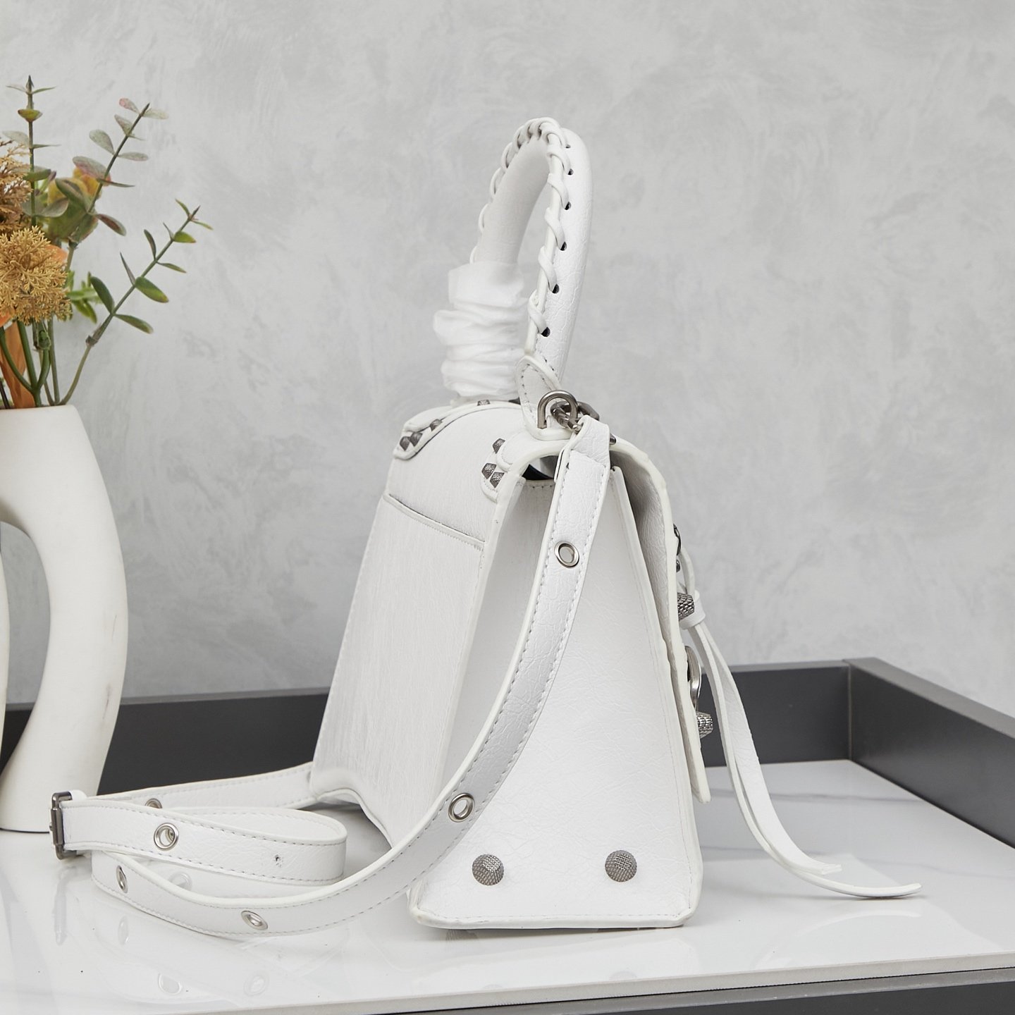 Large size, with box motorcycle hourglass bag|||Balenciaga motorcycle hourglass bag. Have you heard of the collaboration between Balenciaga’s Hourglass and motorcycle bag? Look at this combination of Hourglass bag and Le Cagole #motorcycle bag#. The hourglass bag body is covered with rose studs of the motorcycle bag. Black Arena lambskin is full of punk style and quite interesting. Size: 27x18x11.