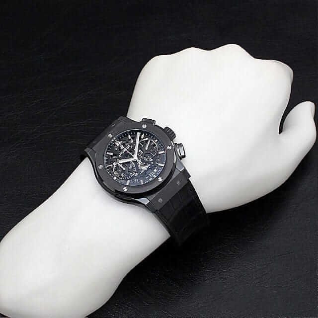 The Hublot Big Bang Chronograph 525.CM.0170.RX Replica is a luxury watch. It features a 904L stainless steel case and bezel. with a black finish and diamond accents. The movement is an automatic HUB 1155 caliber. with a power reserve of 60 hours and a precision of (-3/+3 sec/day) within COSC certification limits. The second hand has a sweep motion. The bracelet is made of rubber. with adjustable links and a 904L stainless steel fold clasp.