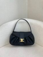 New CELINE spring and summer series new POLLY bag. The new season bag is still the brand’s iconic Triomphe Triumph logo as the core element. The baguette profile of the Polly handbag show is highlighted by the wavy curve at the bottom, adding a beautiful attribute. The handbag adopts envelope flip with soft pleated bag body, presenting an elegant retro atmosphere. Magnetic buckle opening and closing, with a main compartment, a zipper pocket, cow leather with sheepskin lining, gold finish 🉑 shoulder back 🉑 hand-held! Capacity rod drop!