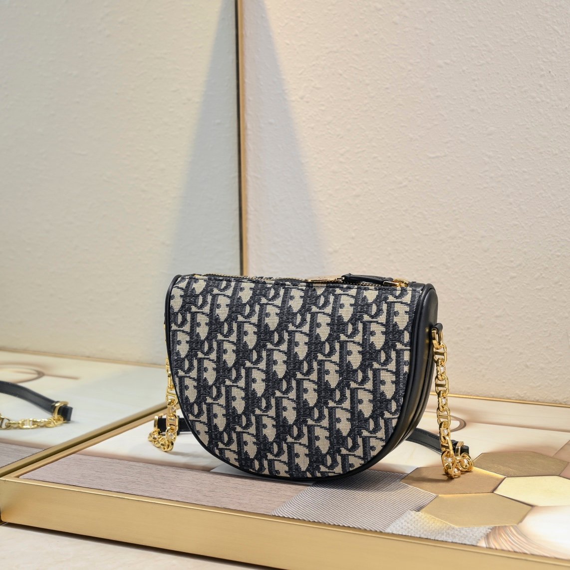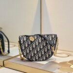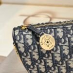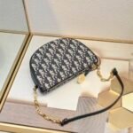 This callisto chain handbag is a new addition to Dior’s autumn collection, and it enhances the style of the collection with a stylish and elegant half-moon shape. It is carefully crafted in blue oblique print and embellished with the same tone of cow leather detailing. The zipper is designed to open and close, with a circular plaque engraved with the logo and star symbols, and the spacious compartment is equipped with multiple card slots. CD chain link chain is decorated with resin beading and paired with a leather strap for even more comfort on the shoulder. Dimensions: 20x14x4 cm