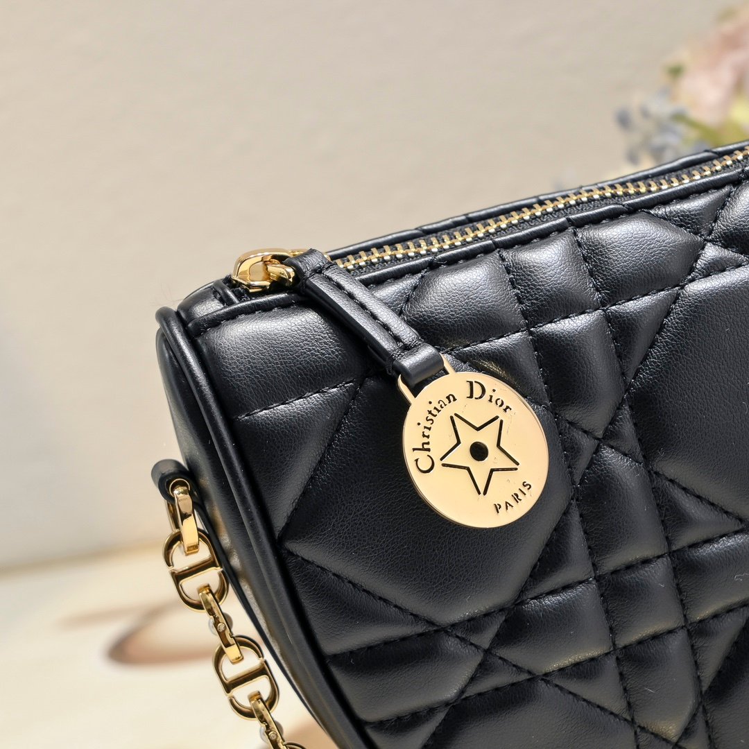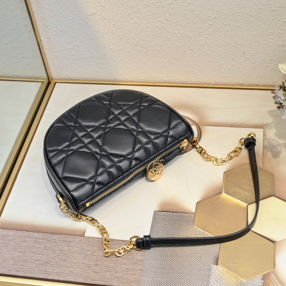 This callisto chain handbag is a new addition to Dior’s autumn collection, and it enhances the style of the collection with a stylish and elegant half-moon shape. It is carefully crafted in blue oblique print and embellished with the same tone of cow leather detailing. The zipper is designed to open and close, with a circular plaque engraved with the logo and star symbols, and the spacious compartment is equipped with multiple card slots. CD chain link chain is decorated with resin beading and paired with a leather strap for even more comfort on the shoulder. Dimensions: 20x14x4 cm