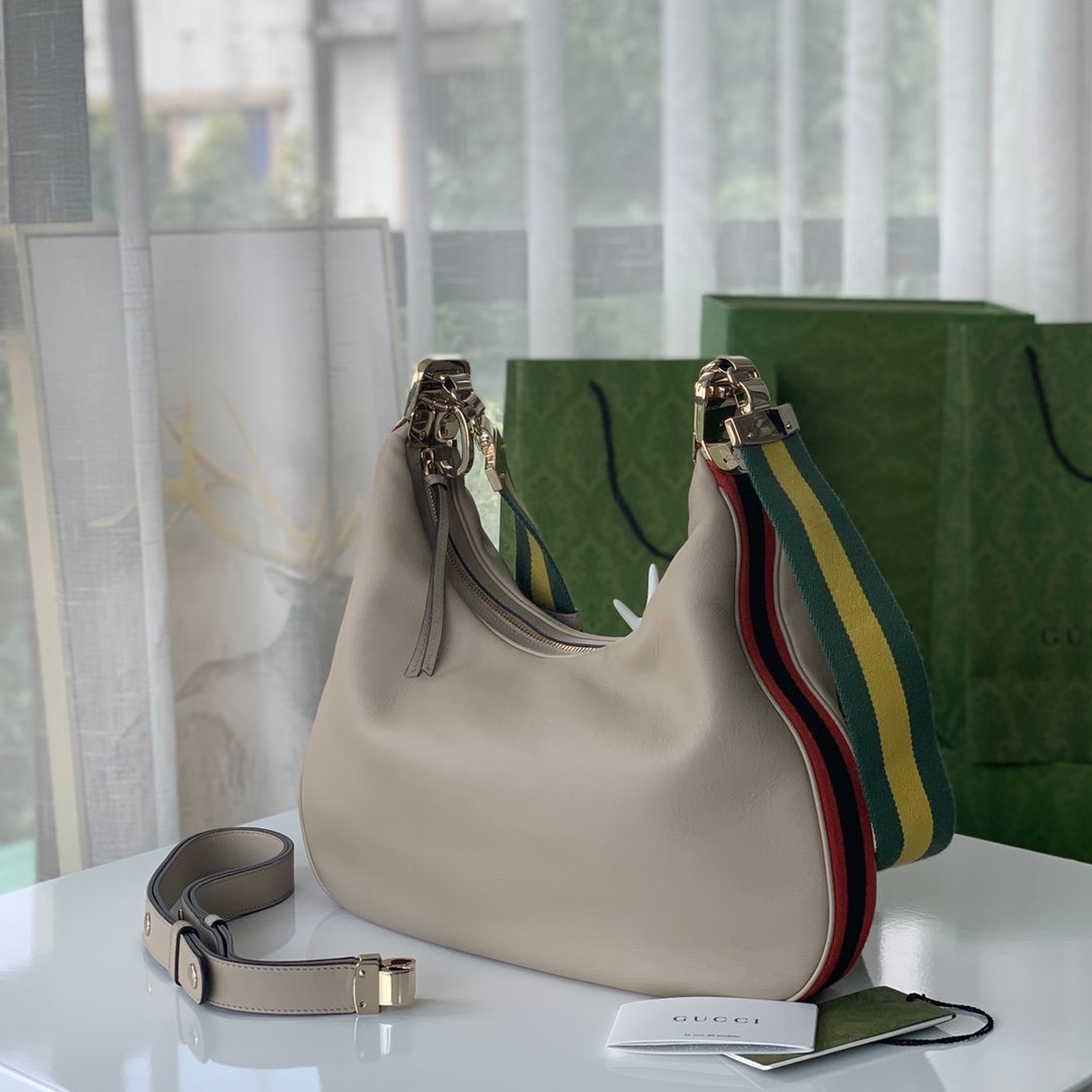 [G] 🔥🔥🔥 G home Attache series large shoulder backpack 🌺 GG with red and blue webbing piping, gold tone accessories, cotton and linen lining 🌼 with leather shoulder strap and removable webbing shoulder strap, G hook buckle 🌹 color: oat