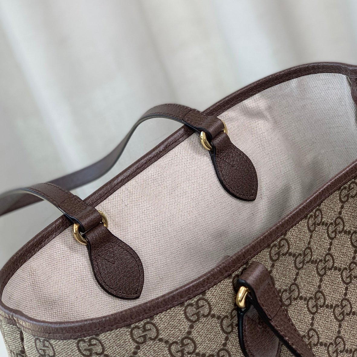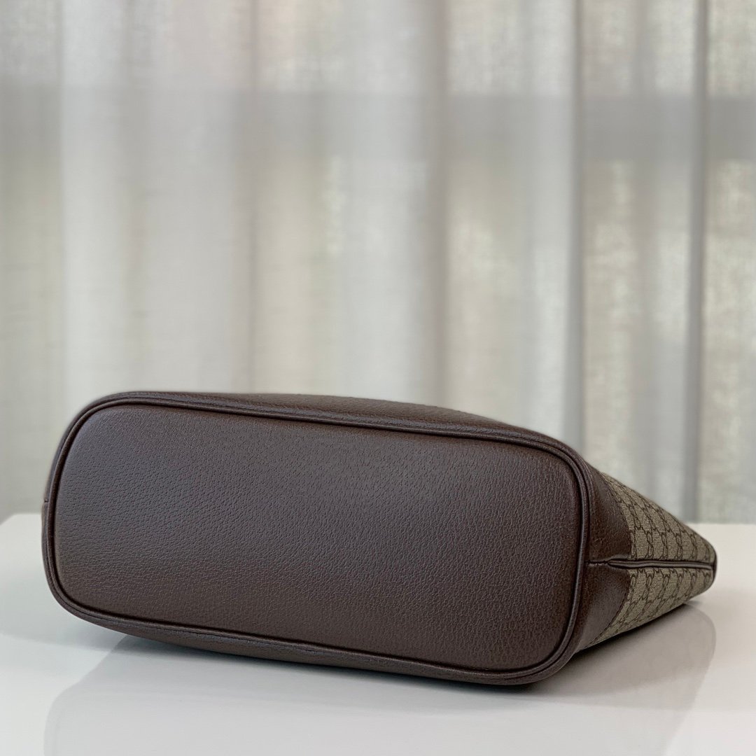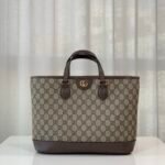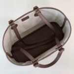 GG mini tote bag of Ophidia series. Beige and ebony GG with brown leather and cotton and linen lining.