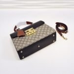 [G] 🔥 🔥 🔥 Padlock series high-grade artificial canvas handbag 🍀. A small structured handbag 🌸 with a key lock switch 🌺. Inspired by archive bags 🐯 and comes with a leather key case. The shoulder strap is connected to the top handle to create a more minimalist look that echoes the briefcase. Model: 4531824 🌾. Size: 28*19*11cm.