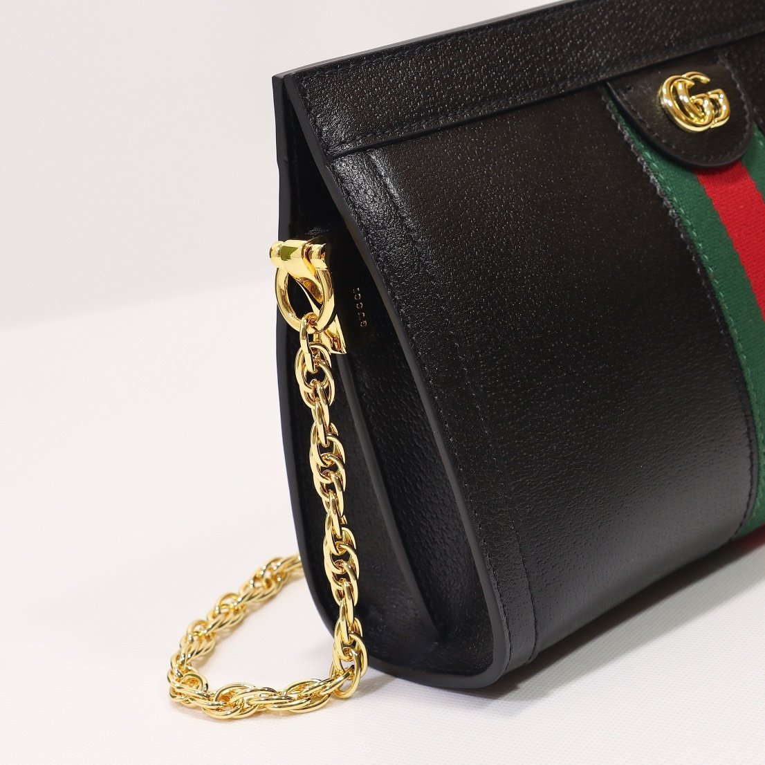 Upgraded version ❕ G home Ophidia series with inlaid webbing striped details for vintage style design. Structural shape, securely closed with magnetic buckle, leather piping, decorative collection details – double G accessories. Model: 503820 Color: brown leather/PVC, size: 26x17x8cm Details GUCCI