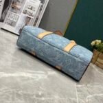 The全新 Sac Plat Cross handbag is based on Louis Vuitton’s classic Sac Plat handbag. It features luxurious Taurillon leather combined with refined details such as leather reinforcement straps and nameplates. The Monogram pattern is woven with cotton denim and presents a retro style after bleaching and sand washing. It shows a subtle distressed effect and is equipped with a wide-mouth zipper opening and closing. The detachable shoulder strap allows for multiple carrying methods.