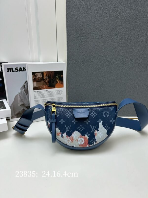 Upgraded version. M23835 M23838 black check, Monogram, black flower, embossed. This LV Moon Crossbody handbag is made of Monogram Eclipse coated canvas with leather trim and shoulder straps. The elegant and handsome atmosphere is self-evident. Blue flower flame rose silk-screened semicircle bag, moon bag, pea bag. oo [handshake] [handshake] The half-moon shape is convenient for cross-body wearing from front to back and can easily hold mobile phones, small wallets and headphones. Size: 24.5 x 16 x 4.5 cm.