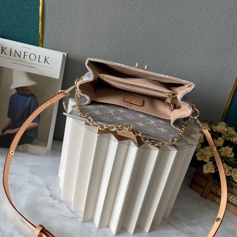 The handbag adopts a fashionable shoulder backpack shape and is full of trendy sense. The small bag body is made of the brand’s Monogram canvas and is equipped with a unique S-lock buckle and a stylish top handle. The polished surface is shiny and dazzling. It has diverse functions and spacious space. The detachable long shoulder strap is convenient for shoulder carrying or diagonal slinging. It is a good companion for daily outings. Size: 21.5x6x13.5cm.