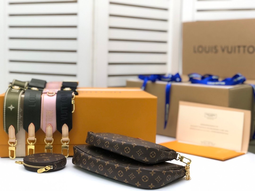 [For flower-matching and authentic small bag] M44823🌱lv🇹 Favorite three-piece handbag. A small and lightweight three-piece handbag made of Monogram canvas. It can be carried by hand or slung diagonally🎶. Matched with a small hanging bag, it has multiple uses. It is a classic style that you can carry on any occasion. ~~Size: 24.0×13.0×4.5 /19.5×11.0×4.0 /9.5×2.0.