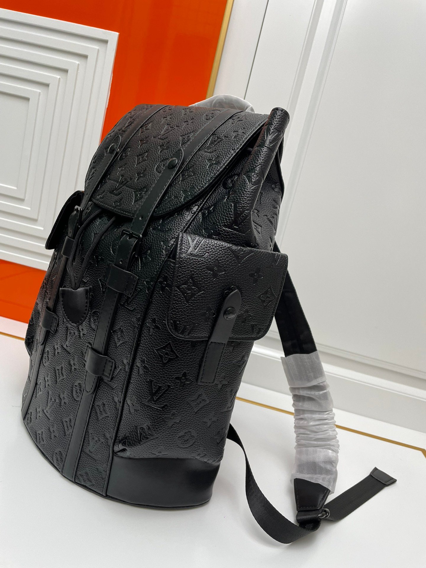 With black leather trim, reinterpret the spirit of the hiking backpack. Gray and black tones are matched with silver snaps and zippers. Equipped with multiple pockets and a leather flap with snaps to ensure the safety of items inside the bag. Detailed characteristics: 41.0 x 48.0 x 13.0 cm.
