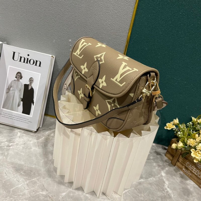 Handbag. This DIANE handbag is equipped with a leather shoulder strap (can be carried under the armpit) and an embroidered shoulder strap (can be carried on the shoulder or crossbody). Both can be removed. The capacity is sufficient for daily use. There is no pressure to hold the largest mobile phone. The belt-like buckle is a decoration. In fact, it is a magnet opening and closing, which is relatively convenient. There is a compartment in the middle for easy organization of things. There is also a zipper area where valuable items can be placed. Size: 25.0 × 9.0 × 15.0 CM.