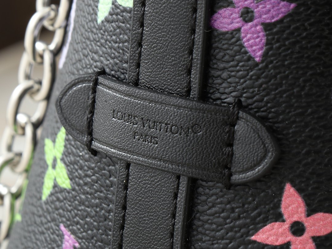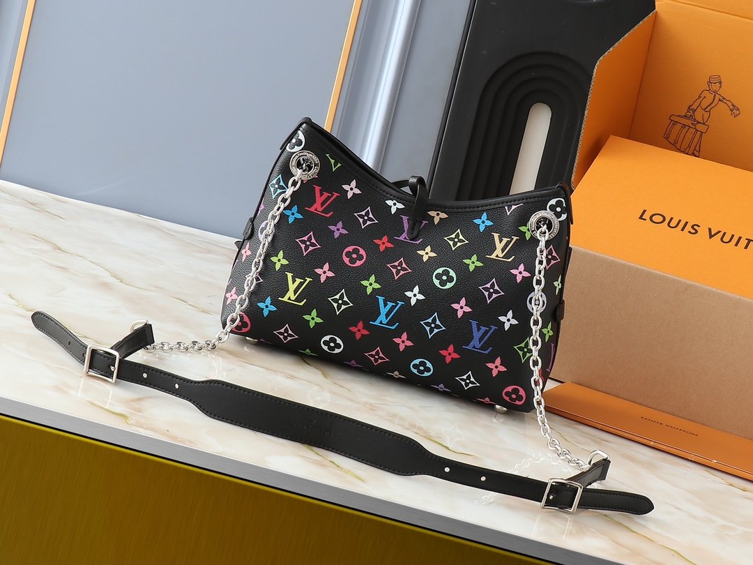 The upgraded M13014 M24860 CarryAll BB bag is crafted from Monogram canvas, featuring Monogram flowers embellished with eye-catching chains, perfect for both day and night occasions. The leather plaque and tie closure complement each other beautifully, while the zippered interior pocket makes it convenient to access credit cards. Dimensions: 26.0 x 17.0 x 10.0 cm