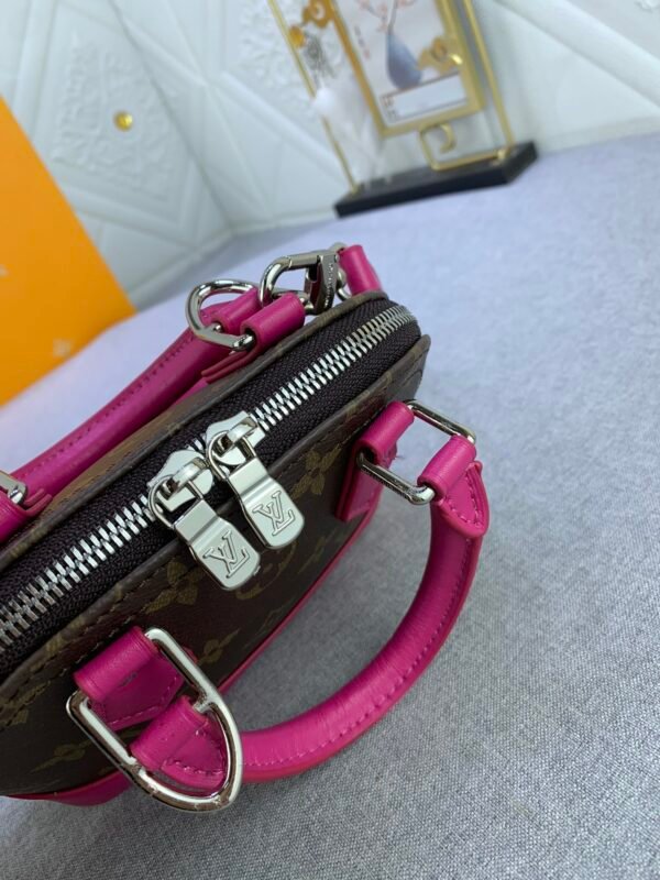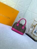 Mini shell bag series. New launch Nano Alma handbag. The Nano Alma reproduces the symbolic Alma bag in a miniature version. Louis Vuitton’s signature Monogram canvas material coordinated with decorations of natural leather. A delicately crafted item that combines traditional charm and modern functionality. When the double zipper is opened, the interior design with surprisingly ample storage space is revealed. With two leather handles and an adjustable and detachable shoulder strap, multiple styles can be created.
