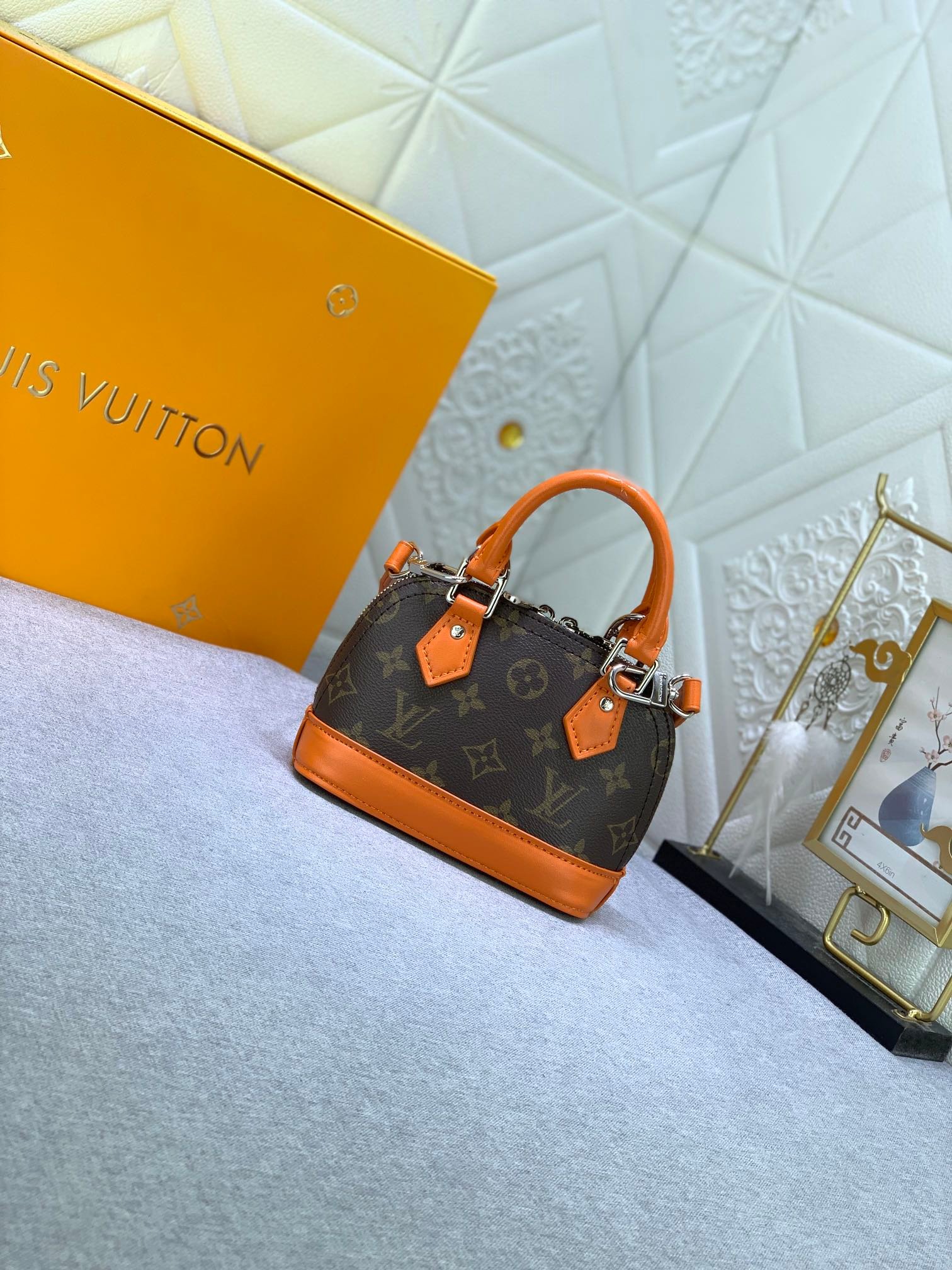 Mini shell bag series. New launch Nano Alma handbag. The Nano Alma reproduces the symbolic Alma bag in a miniature version. Louis Vuitton’s signature Monogram canvas material coordinated with decorations of natural leather. A delicately crafted item that combines traditional charm and modern functionality. When the double zipper is opened, the interior design with surprisingly ample storage space is revealed. With two leather handles and an adjustable and detachable shoulder strap, multiple styles can be created.