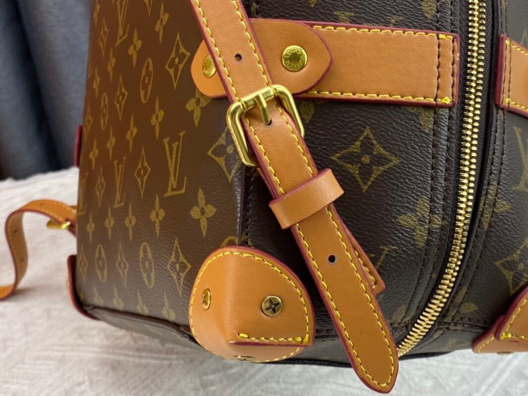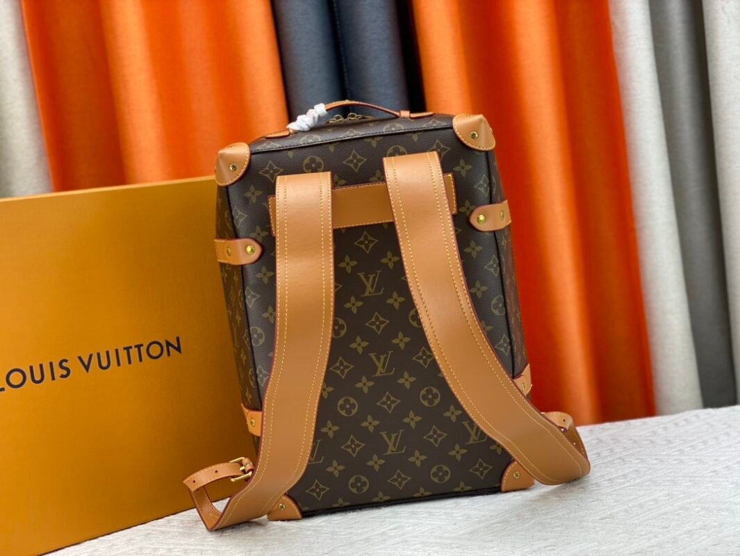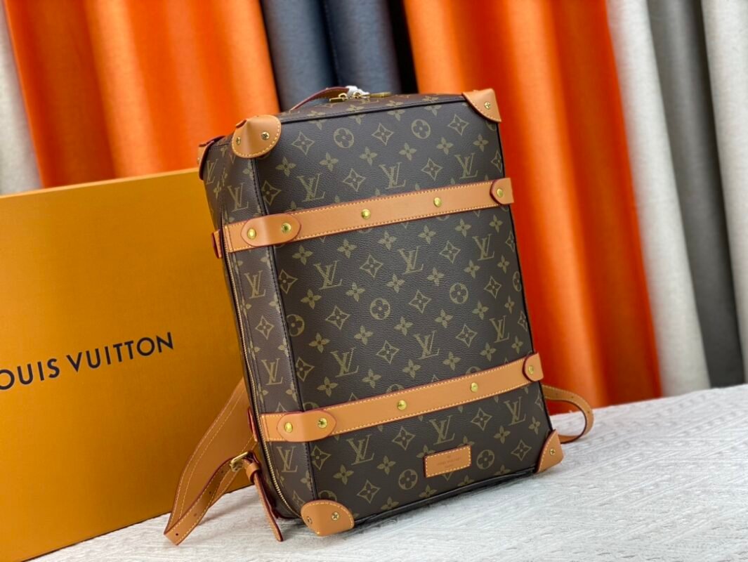 Retro trunk bag 44752 monogram. LV’s classic and refined trunk bag with fabric lining, antiqued gold metal parts, and full Monogram pattern. Zipper closure and adjustable leather shoulder strap. Size: 36*28*14cm.