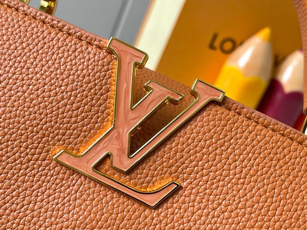 M14971 brown, this CapucinesBB handbag invokes the design elements of the Harmony series, and is inspired by the Monogram flowers with a gorgeous chain. The Taurillon bovine leather bag is embellished with the resin-coated LV logo, and the flap that can be opened externally or inwardly is now a neat inner layer with multiple pockets.