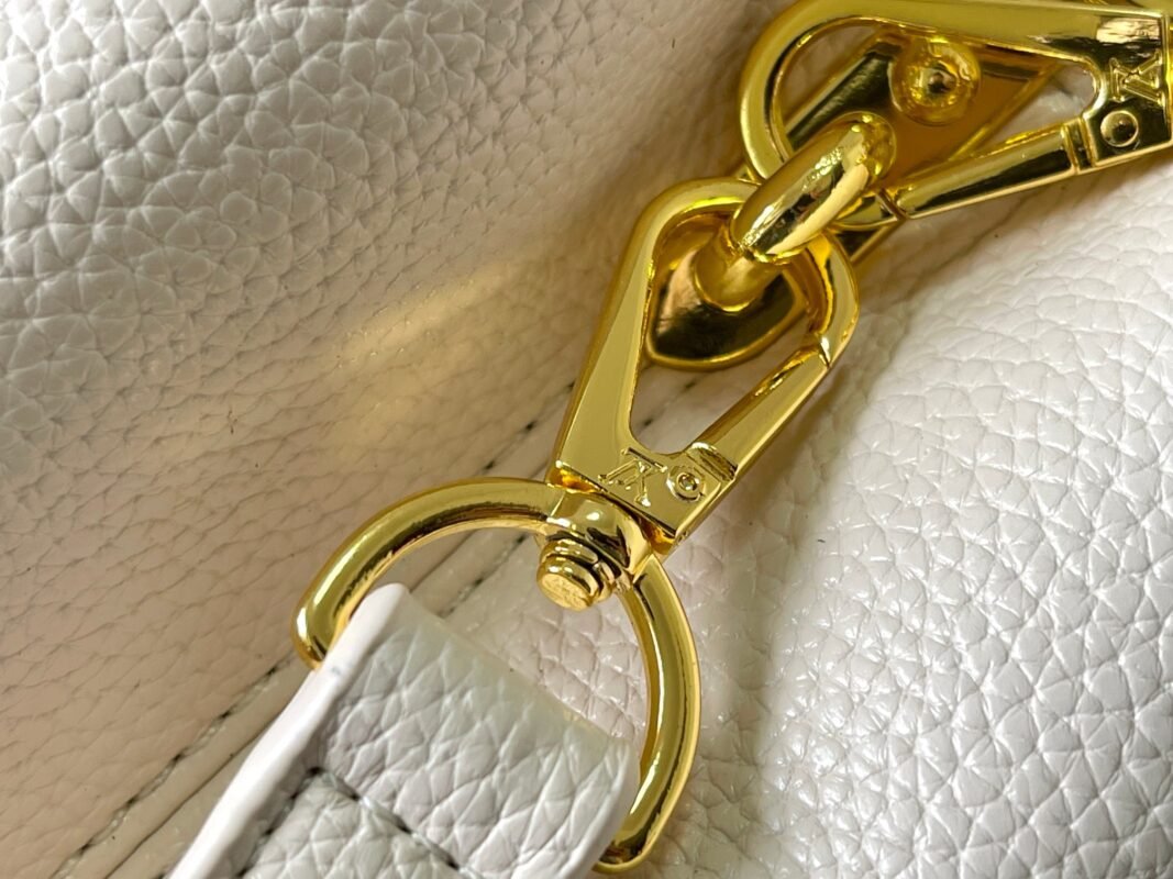M14971 brown, this CapucinesBB handbag invokes the design elements of the Harmony series, and is inspired by the Monogram flowers with a gorgeous chain. The Taurillon bovine leather bag is embellished with the resin-coated LV logo, and the flap that can be opened externally or inwardly is now a neat inner layer with multiple pockets.