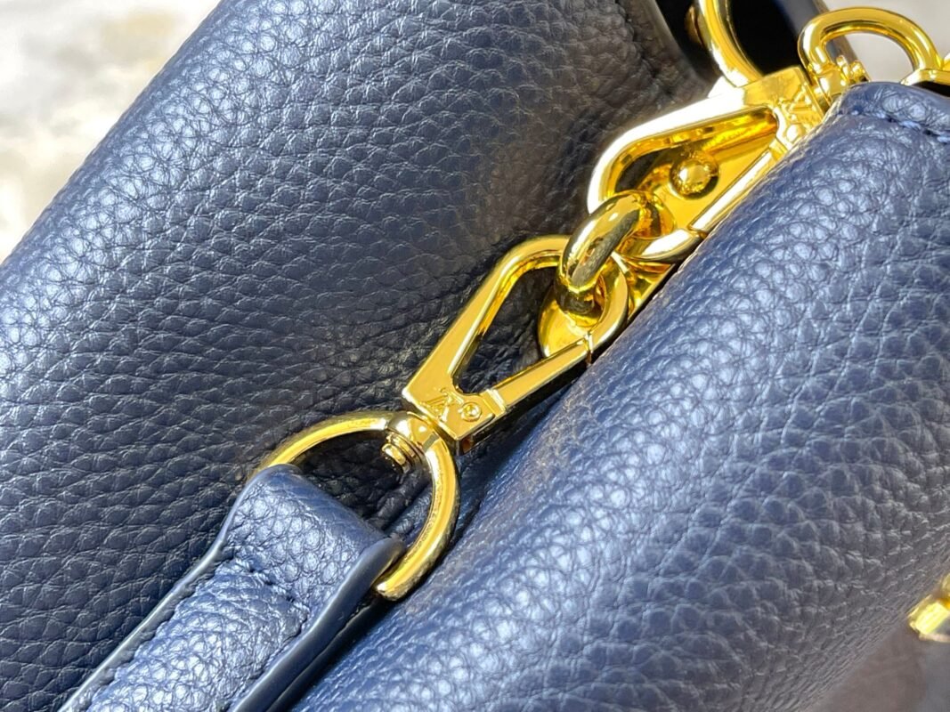 M14971 brown, this CapucinesBB handbag invokes the design elements of the Harmony series, and is inspired by the Monogram flowers with a gorgeous chain. The Taurillon bovine leather bag is embellished with the resin-coated LV logo, and the flap that can be opened externally or inwardly is now a neat inner layer with multiple pockets.