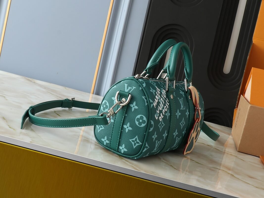Upgrade the original M46271 black flower M11645 grey flower blue, M11996 embossed blue M13166 yellow M12684 green pillow bag. This Keepall 25 handbag is made of Monogram Eclipse Reverse canvas, showing the elegant reinterpretation of Louis Vuitton’s classic pattern. The reinforced straps and leather name tags continue the iconic elements of the Keepall series. The zipper opening and closing keep personal items safe on the go.💠Size: 25.0 x 15.0 x 11.0 cm (length x height x width).