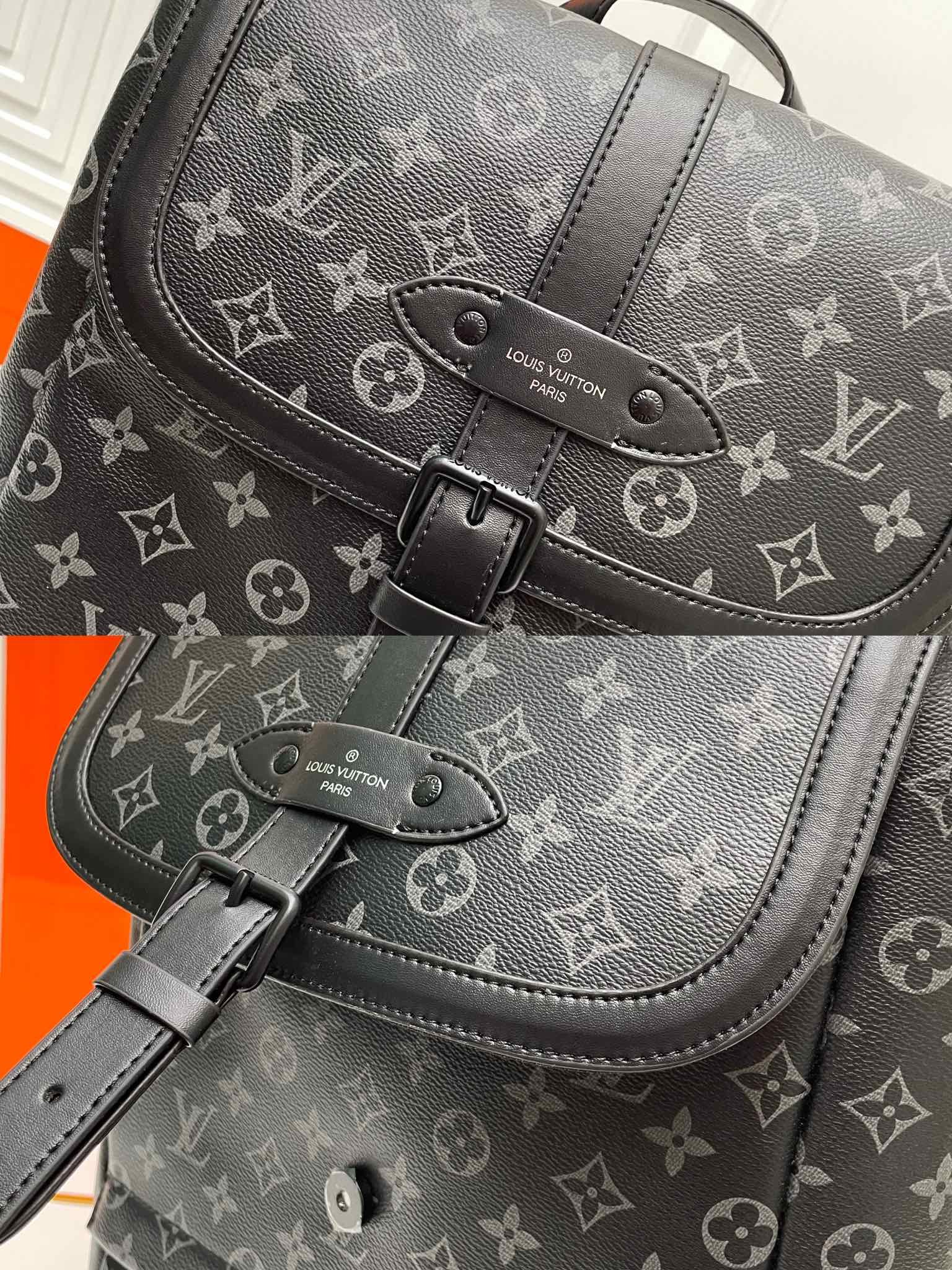 The new M45913 Saumur backpack gives a modern touch to Louis Vuitton’s classic item, the equestrian-inspired Saumur handbag born in 1986. The understated Monogram Eclipse canvas is paired with leather detail designs with traditional brand connotations, including a buckle shoulder strap with a hidden magnetic clasp. It has a spacious main compartment and a unique notebook pocket inside, with diverse functions and is a good companion for daily outings. Size: 27.0 x 42.0 x 13.0 cm (length x height x width).