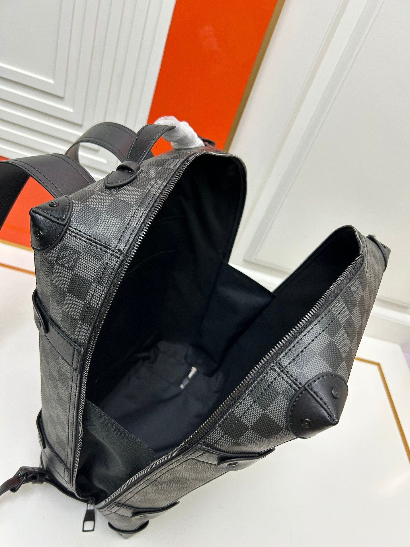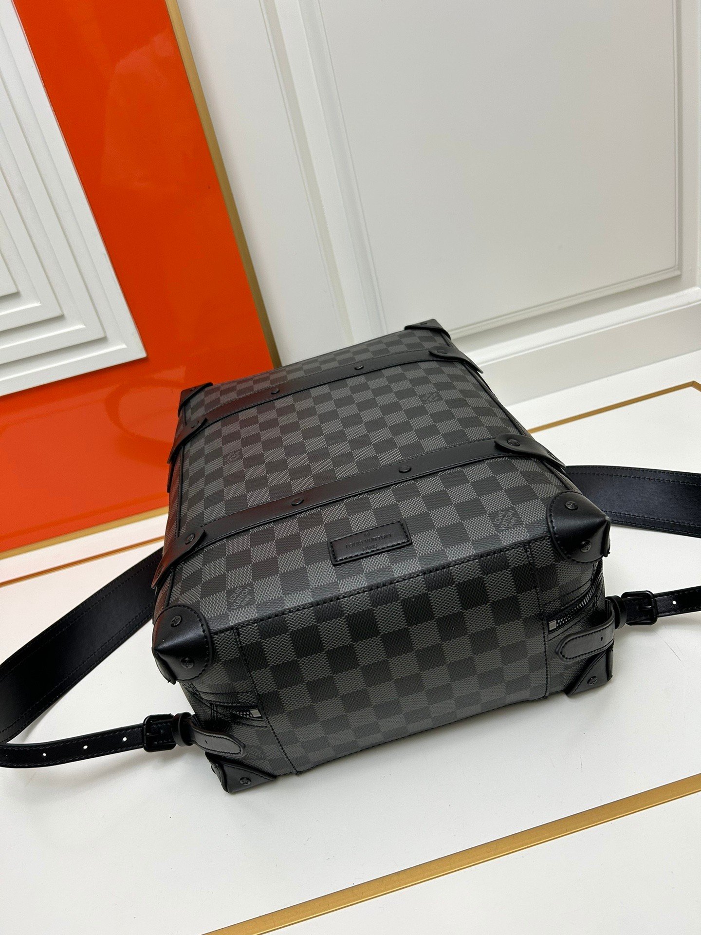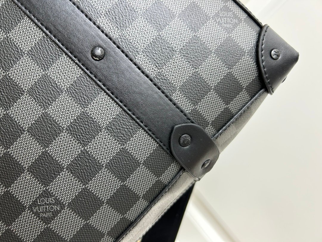 Retro trunk bag 44752 with LV’s classic and refined trunk bag, fabric lining, aged gold metal parts, full Monogram pattern. Zipper closure and adjustable leather shoulder strap. Size: 36*28*14cm.
