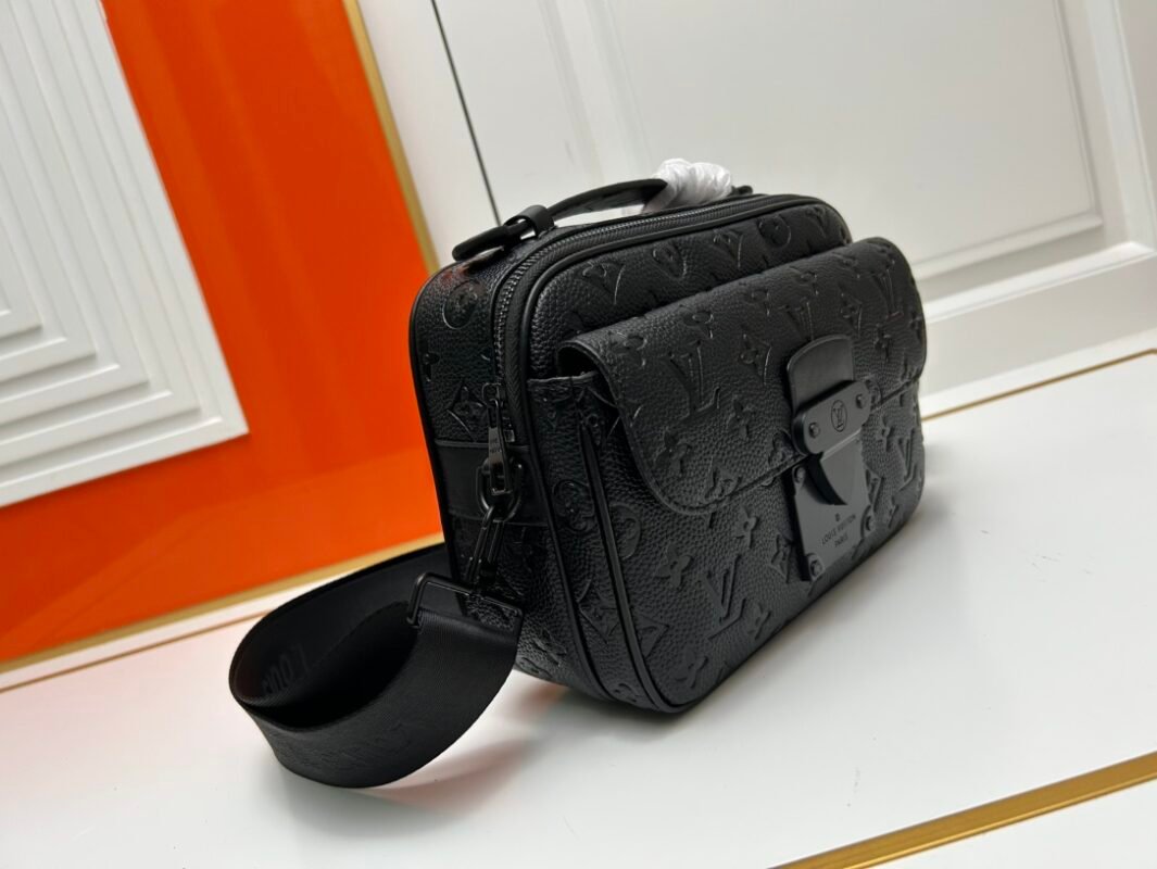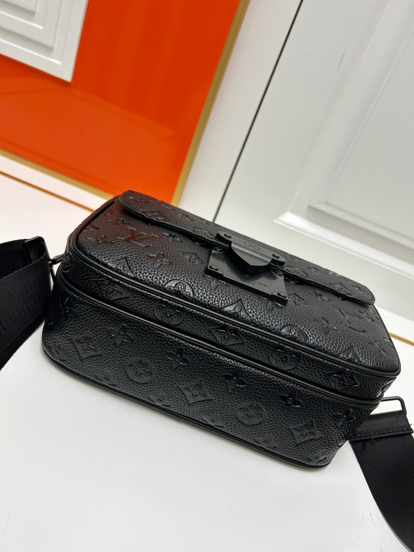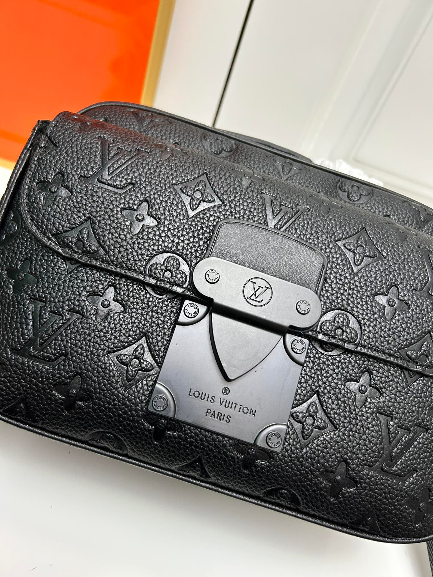 This S Lock messenger bag is made of Monogram Macassar canvas. The new lock is inspired by the trunk lock designed by Georges Vuitton in 1886. Special finishing techniques give this magnetic metal lock a striking and modern look. It is also equipped with a spacious zipper compartment, trunk-style leather handles, and an LV-logo shoulder strap. It is stylish and easy to use. Size: 22.18.8. M58489 embossed. M45806 black. M45836 blue.