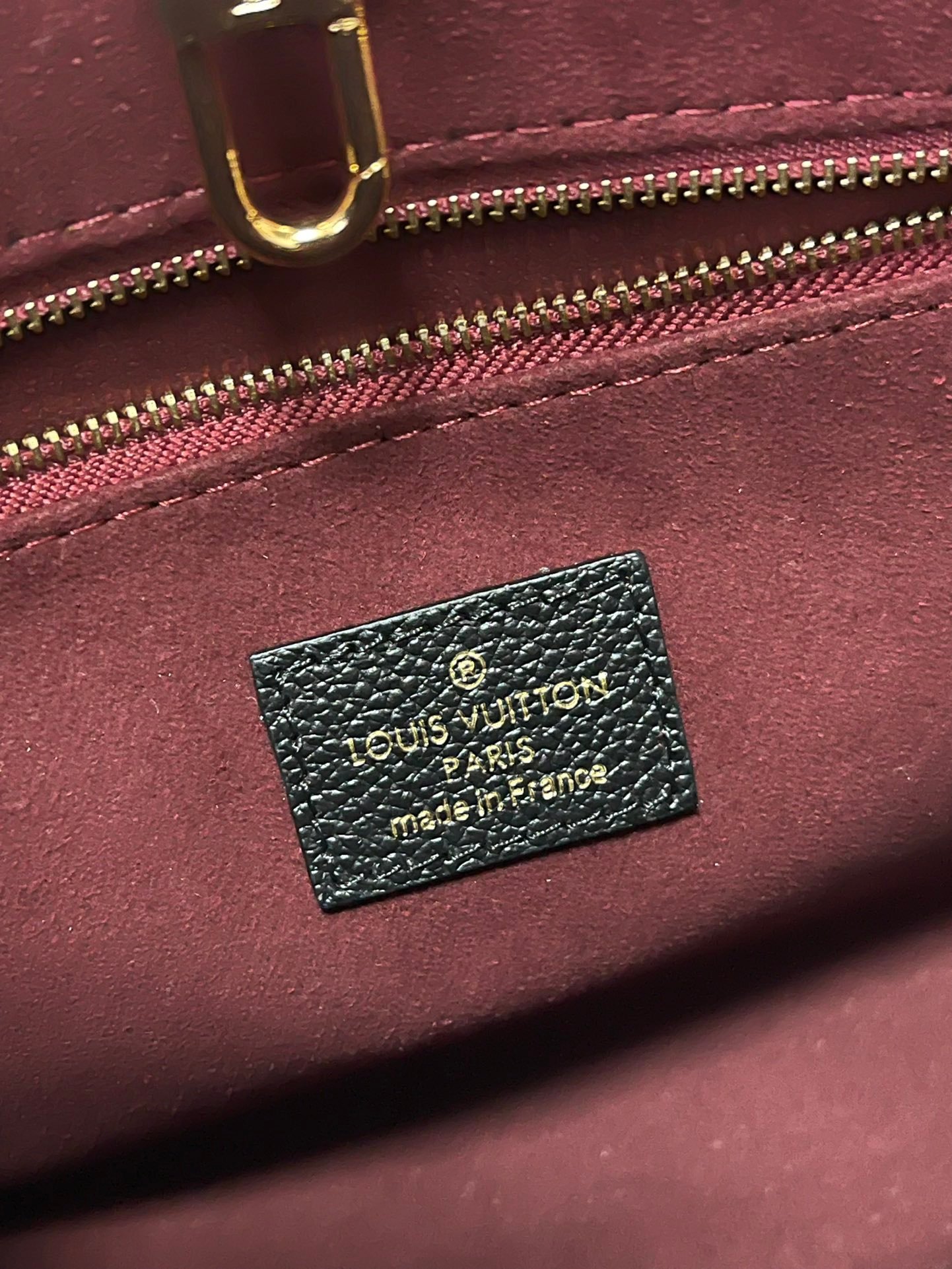 M45659 Onthego small Tote bag draws inspiration from the classic Sac Plat handbag in 1968. The Monogram Empreinte leather with the embossed Giant Monogram pattern creates a miniature version. It can hold daily necessities such as iPad Mini. The flexible handle and adjustable shoulder strap enrich the carrying options. Size: 25x19x11.5cm