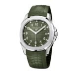 The Patek Philippe Aquanaut JUMBO Khaki Green 5168G-010 Replica is a high quality watch. It features a 904L stainless steel case with a white gold color and a sapphire crystal. The movement is an automatic caliber 324 S C with a power reserve of 60 hours and a precision of (-3/+3 sec/day) within COSC certification limits. The second hand has a sweep motion.