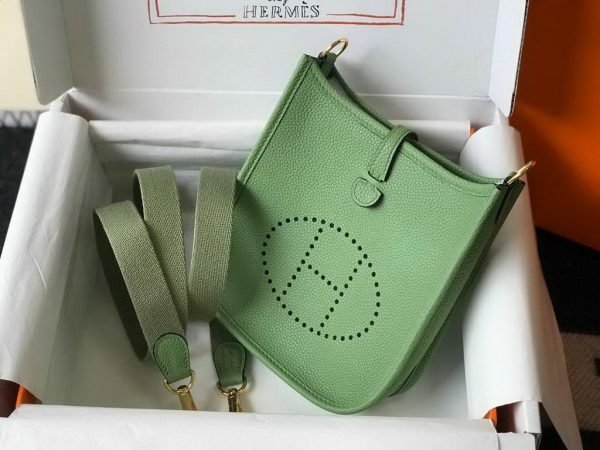 Hermes Evelyne Bag Designer Hermes Mini Crossbody Bag 20393 Gold Buckle Light Green