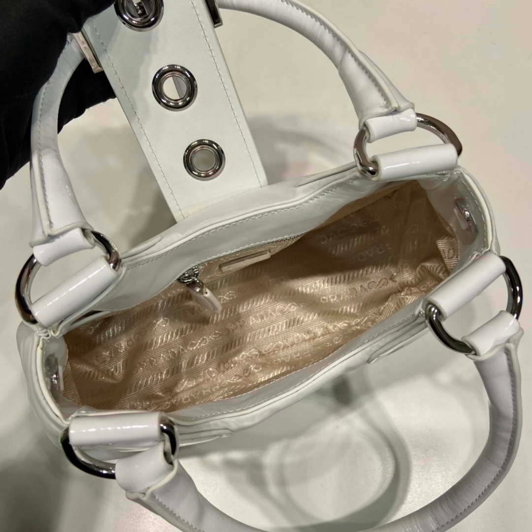 You will get an AAAAA quality knockoff Prada 1BA368 Moon padded patent leather bag White with the best price. 1:1 made as the original. If you are not satisfied with the product you received. please be sure to contact us. we promise to solve the problem for you. We are confident that you will adore our products and that we can establish a long-term business relationship with each other.