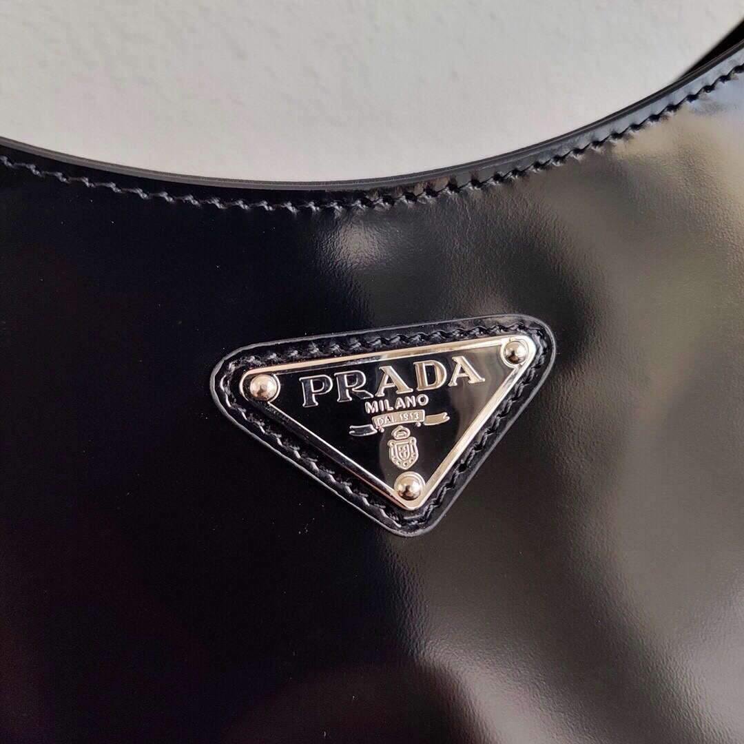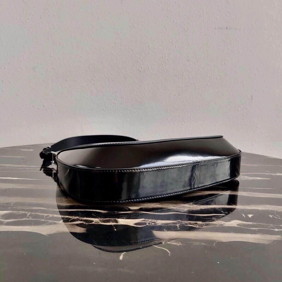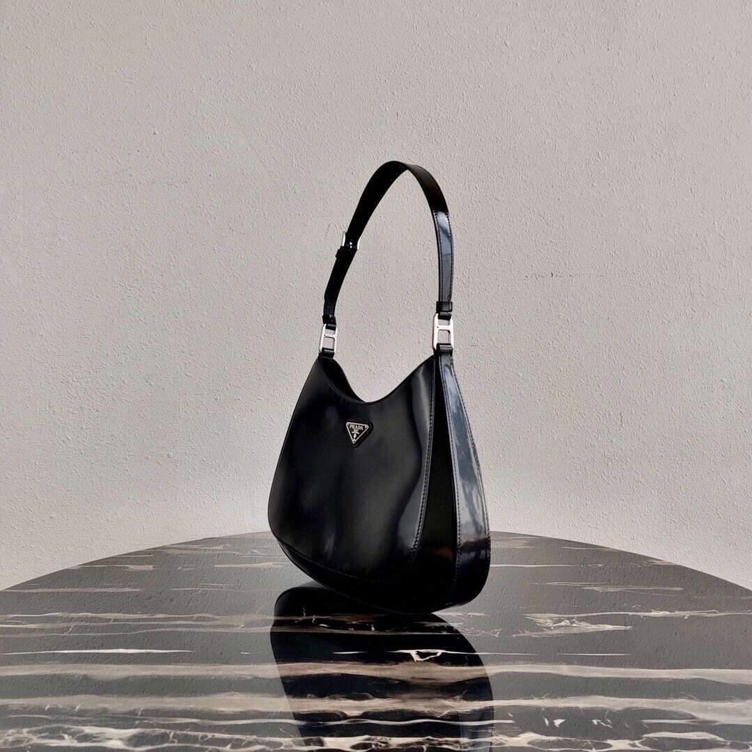 Prada 1BC156 Prada Cleo Brushed Leather Shoulder Bag Black