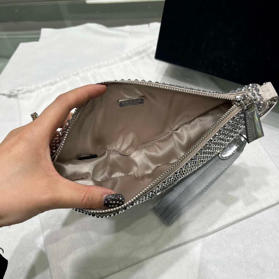You will get an AAAAA quality knockoff Prada 1NE039 Crystal-studded satin pouch Gray with the best price. 1:1 made as the original. If you are not satisfied with the product you received. please be sure to contact us. we promise to solve the problem for you. We are confident that you will adore our products and that we can establish a long-term business relationship with each other.