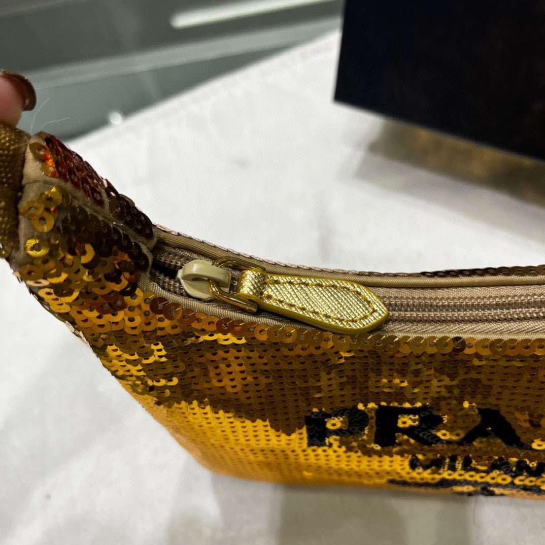 Replica Prada 1NE515 Re-Edition 2000 sequined Re-Nylon mini-bag Gold
