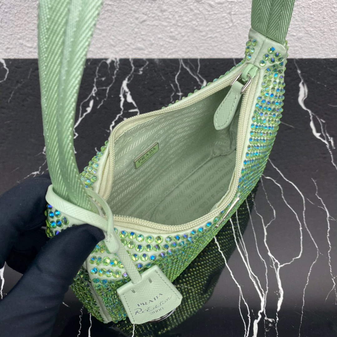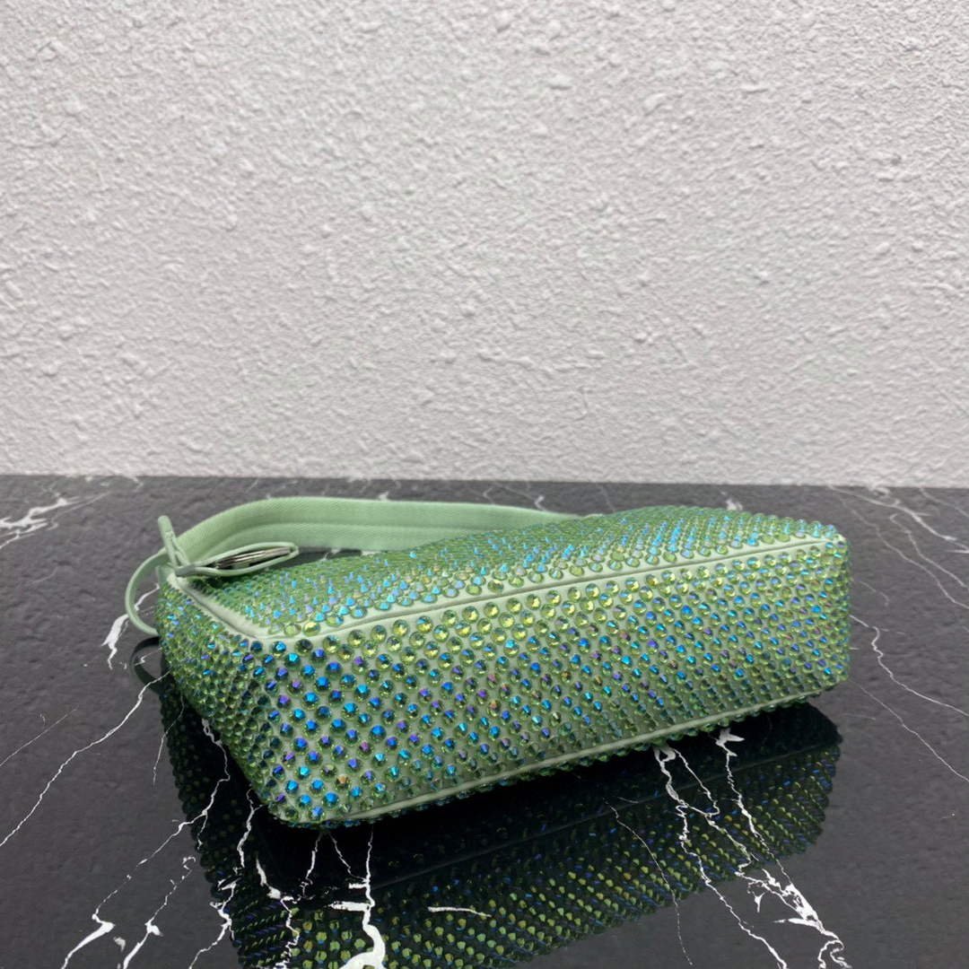 Prada 1NE515 Satin mini-bag with artificial crystals Green on sale now.