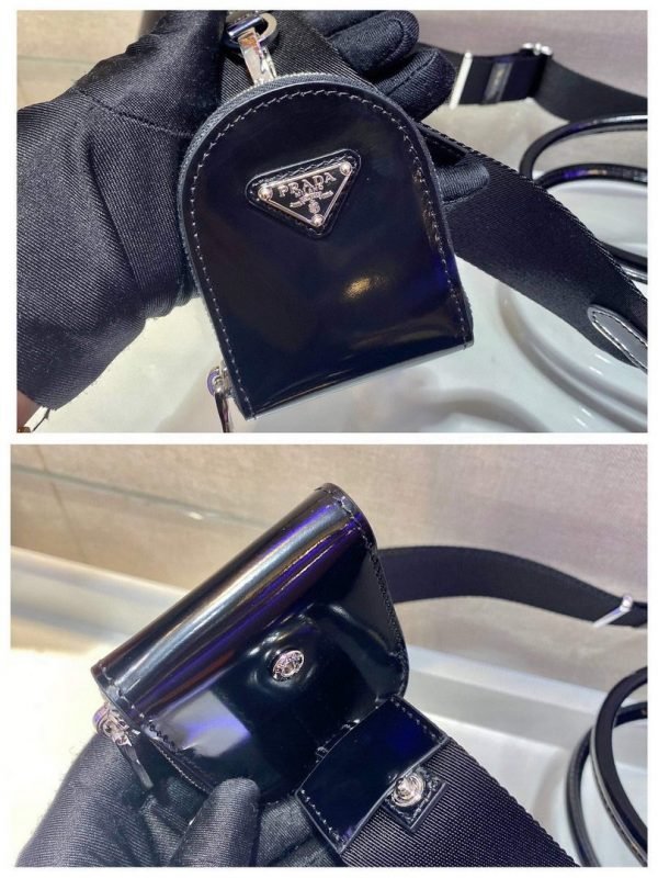 The handbag is made of brushed leather. an iconic material of the brand since the 1990s that is traditionally linked to the luxury world. The triangle logo. which appeared for the first time on trunks designed by Mario Prada. decorates the front of this contemporary design completed with a removable leather pouch. The accessory with a double handle and detachable shoulder strap can be worn in different ways.