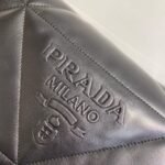 Reinterpreted in always new ways. Prada’s iconic triangle is repeated in the quilted motif of this soft padded nappa leather bag to create a patchwork motif. The chain handle is decorated with the engraved lettering logo.