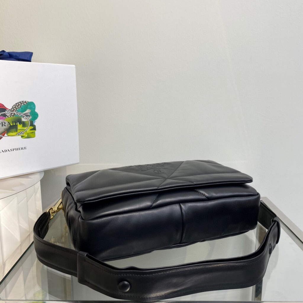 Padded nappa leather shoulder bag 1BD306 Black on sale now.