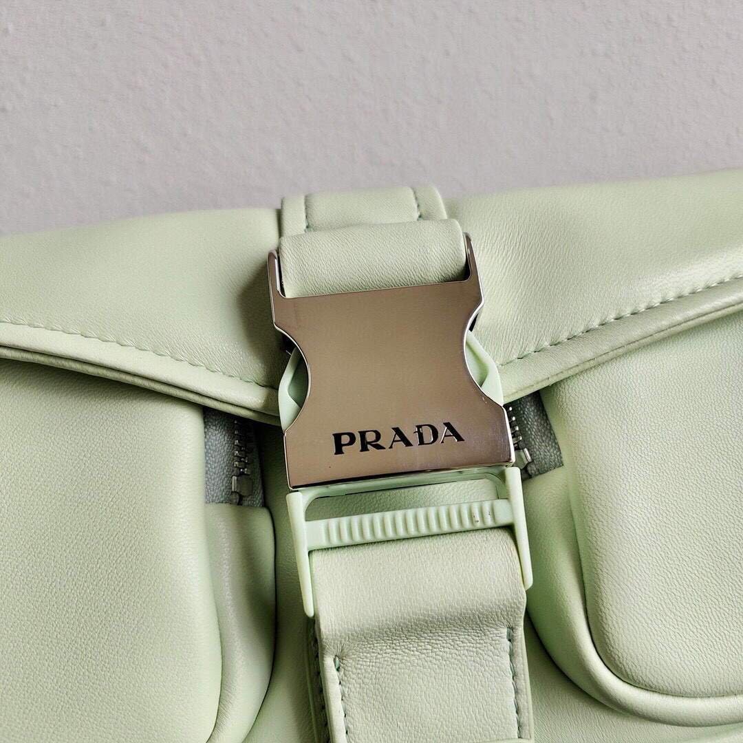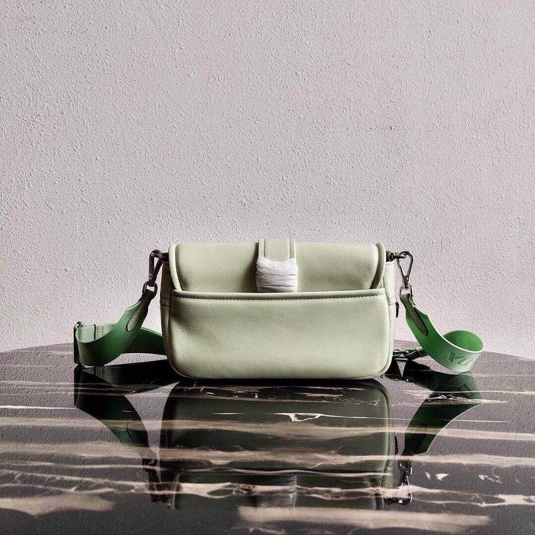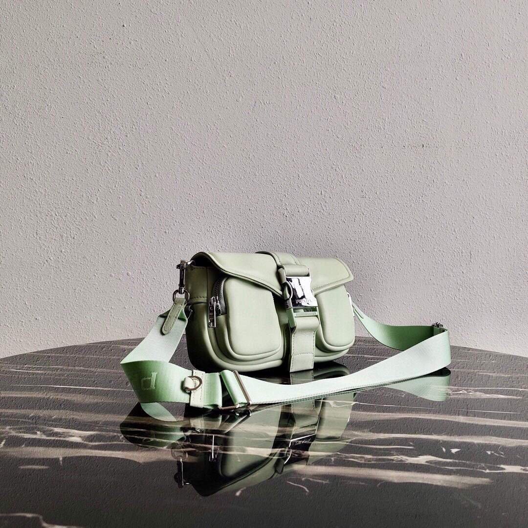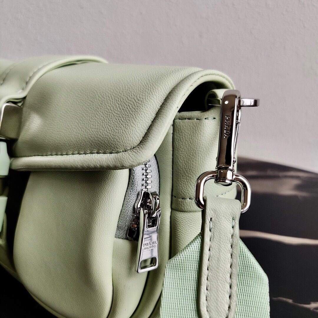 Prada Pocket Nylon and Brushed Leather Bag 1BD295 Green on sale now.