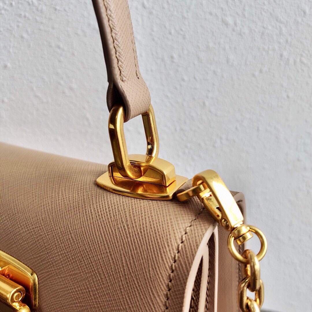 Prada Saffiano Leather Symbole Bag 1BN021 Apricot on sale now.