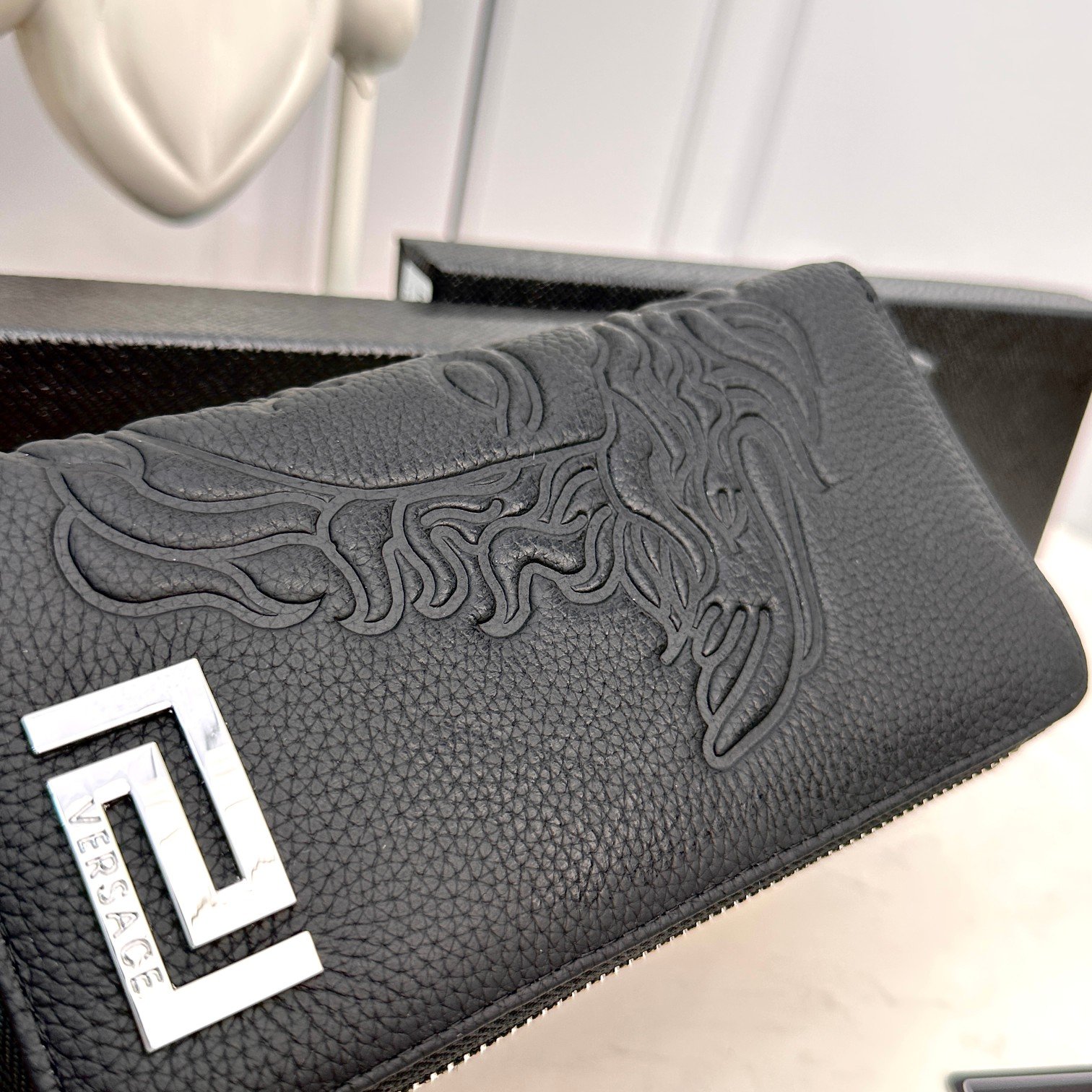 VERSACE Versace ‼ [model] 666037 small wallet [size] 19-10-2 [color] black, high-end quality (original single genuine) [material] VERSACE counter purchasing classic ‼ original imported 🐄 cowhide ‼ authentic imported YKK logo hardware and zipper ‼ leather soft feel ‼ unique quality ‼ fashion design ‼ complex handmade 🎉 trendy man must have‼