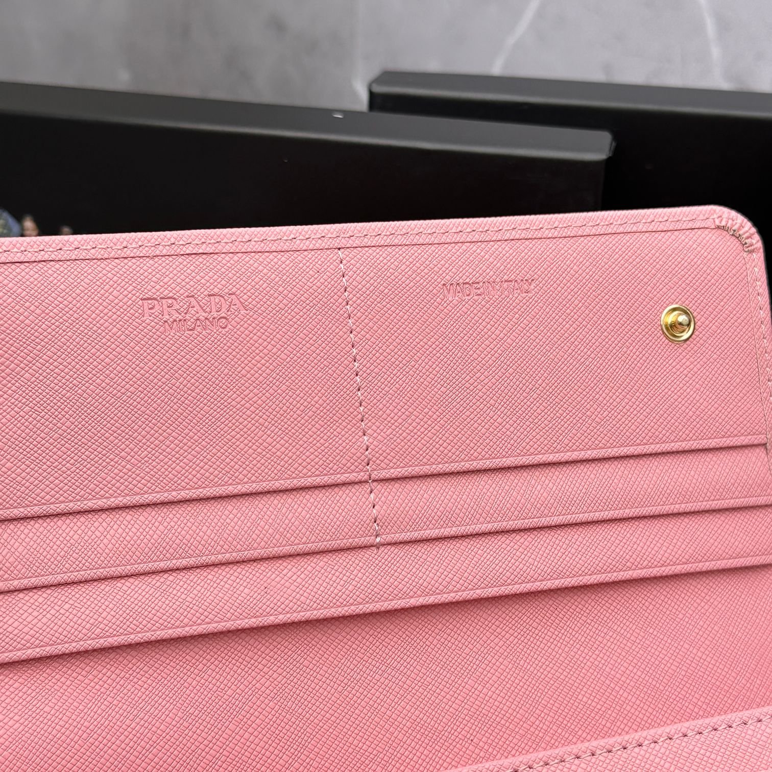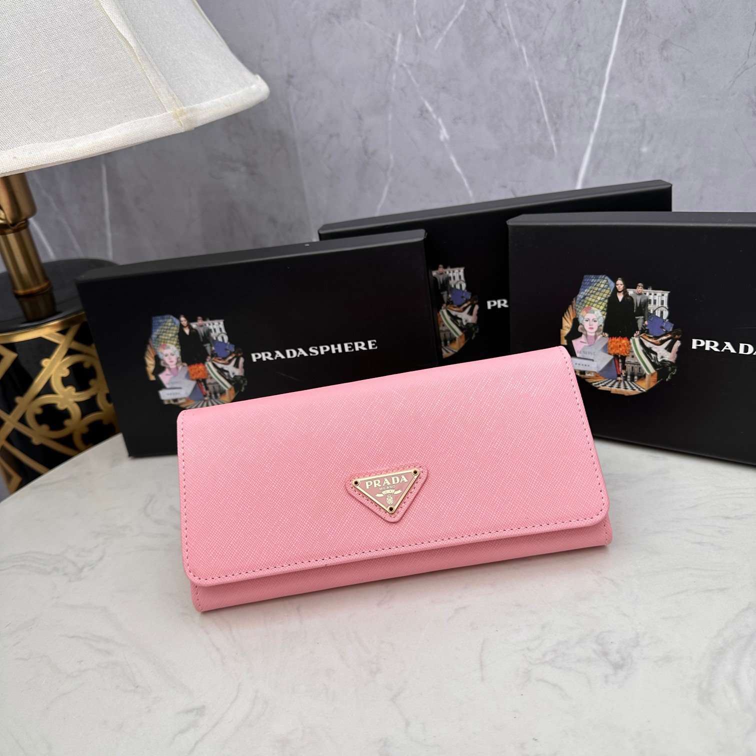 PRADA,👏👏 classic flap wallet with two compartments.💼 A classic piece, simple and fashionable. Made of top original cross-grained cowhide from Italy with excellent texture. Imported threaded lining. White steel metal hardware accessories! Exquisite stitching is evenly and neatly done. Exquisite workmanship. Size: 19x10x2.5. Color: glue-dripping triangular logo in plum red.