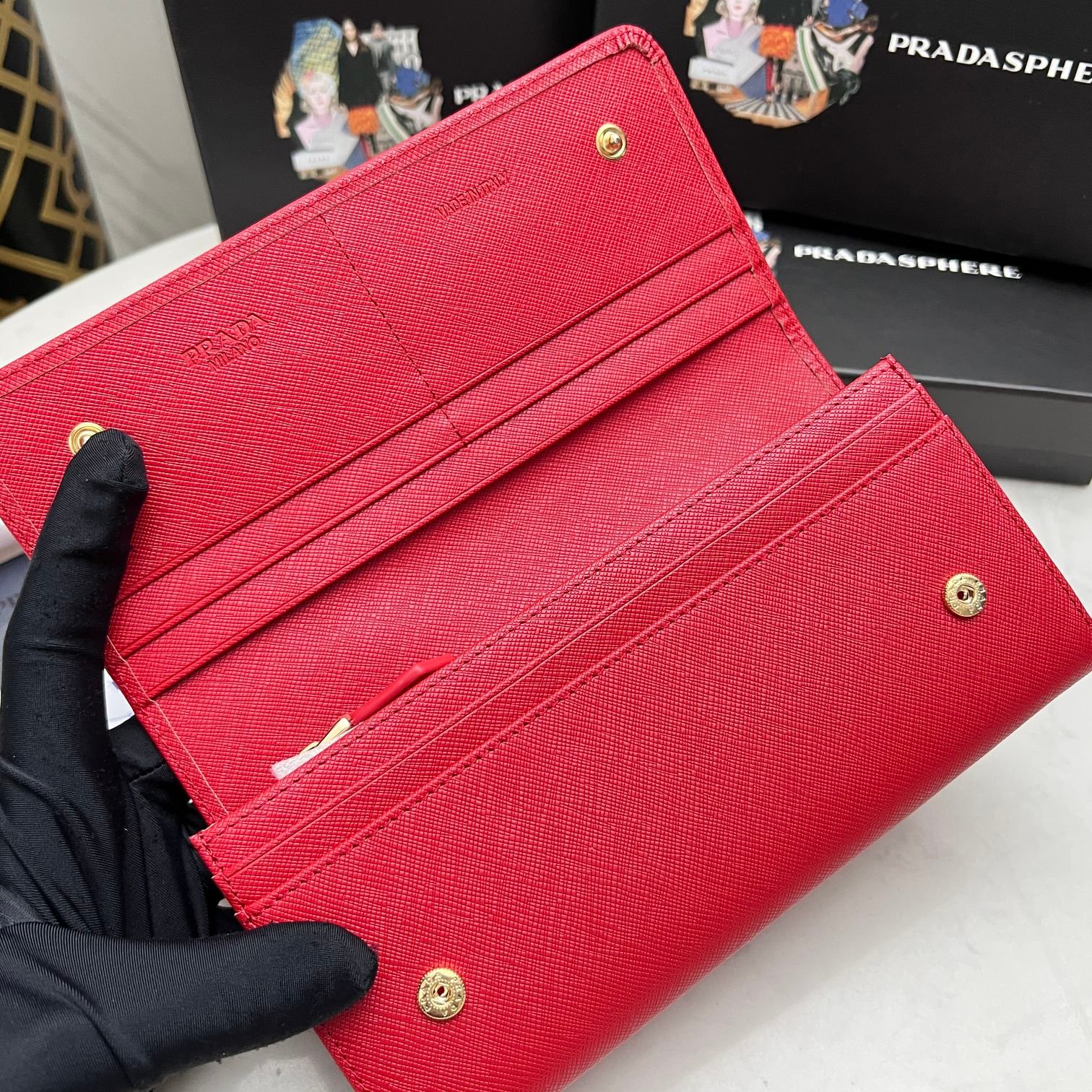 PRADA.👏👏 Classic flap wallet with two compartments.💼 A classic piece, simple and fashionable. Made of top Italian original cross-grained cowhide with excellent texture. Imported threaded lining. White steel metal hardware accessories! Exquisite stitching is evenly and neatly done. Exquisite workmanship. Size: 19x10x2.5. Colors: multicolored scattered labels including plum red, bright red, blue, black, and pink. Number: ML202.