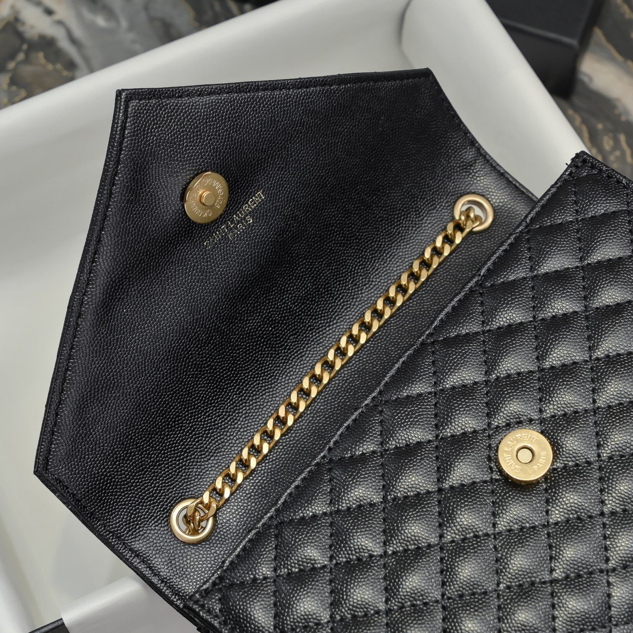 Small grain embossed quilted leather envelope bag