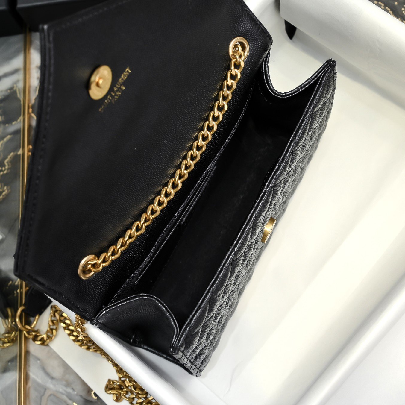 Classic is eternal, beautiful V pattern and diamond caviar pattern, very wear-resistant, Italian cowhide with eye-catching Y logo, atmospheric and fashionable all in one! Very versatile, small capacity is very large, look at its side to know that it can be installed!